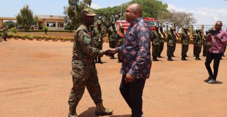 The CDF was accompanied by Commander Land Forces Hon Lt Gen Peter Elwelu, Joint Chief of Staff Lt Gen Musanyufu and other officials from the Ministry of Defence and Veteran Affairs.
